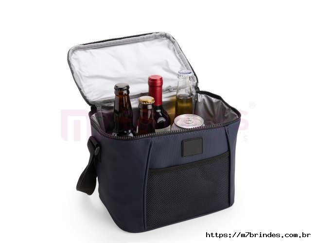 Bolsa térmica confeccionada em poliéster mesclado com PVC impermeável, fechamento em zíper e capacidade máxima de 10 litros. Conta com revestimento térmico em PEVA atóxico, o que oferece maior tempo para a conservação da temperatura de alimentos e bebidas. Apresenta placa emborrachada para personalização, dois bolsos abertos em tela de nylon com elástico, além de alça de mão e alça transversal. Altura : 18 cm Largura : 21 cm Profundidade : 16 cm