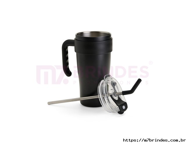 Caneca térmica em inox com capacidade máxima de 800ml. Possui estrutura em parede dupla, alça ergonômica em plástico, tampa rosqueável com vedação a vácuo, protetor para bocal e acesso para canudo com tampa em silicone. Acompanha canudo de inox com ponta de silicone removível. Altura : 21,5 cm Largura : 14,5 cm Circunferência : 32 cm