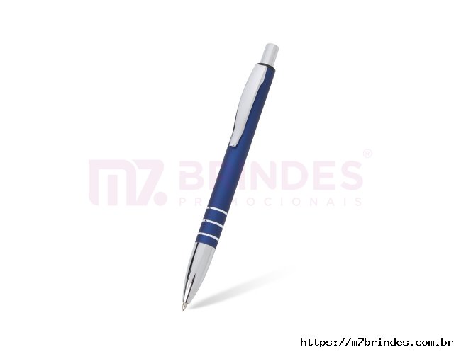 Caneta metálica com acabamento fosco, clipe metálico e ponteira plástica. Carga esferográfica azul 1.0mm e acionamento por clique. Largura : 1,6 cm Comprimento : 14,4 cm