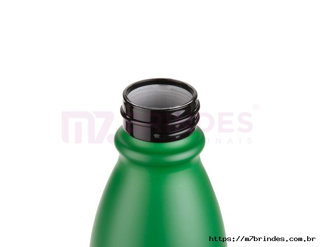 Garrafa em alumínio com acabamento em verniz fosco, revestimento plástico no bocal e capacidade para até 750ml. Possui tampa rosqueável em alumínio com interior em plástico. Altura : 25,1 cm Largura : 7,3 cm Circunferência : 23,1 cm Diâmetro : (bocal) 3,5 cm