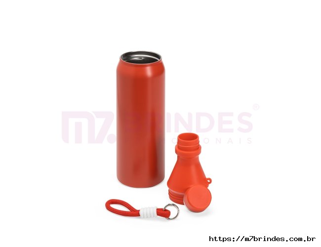 Garrafa térmica em inox com capacidade para até 500ml. Possui estrutura de parede dupla, ideal para conservar a temperatura de líquidos por mais tempo. Conta com tampa rosqueável e compartimento removível em plástico, permitindo o uso como copo. Acompanha alça em nylon com detalhes em plástico e mosquetão metálico. Altura : 26,2 cm Largura : 7,1 cm Diametro : 5,5 cm