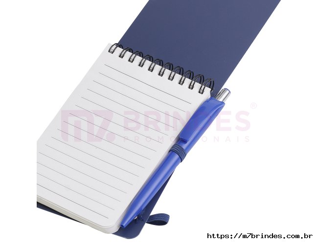 Mini caderno em PP reciclável com suporte para caneta e miolo de 60 folhas branca com pauta. *Não acompanha caneta