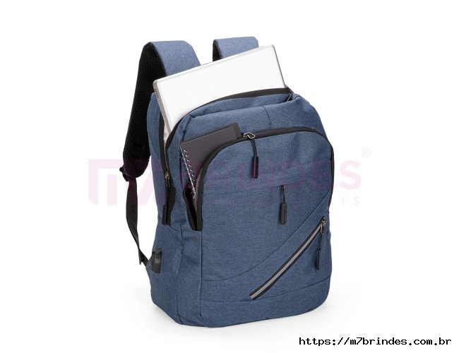 Mochila em tecido Oxford resistente à água com capacidade máxima de 18 litros. Possui compartimento principal com quatro bolsos pequenos e divisória acolchoada para notebook de até 15,6 polegadas. Apresenta um compartimento frontal e dois bolsos em tamanhos diferentes, um deles com faixa refletiva na área do zíper, além de um bolso e um adaptador USB posicionados em laterais opostas. Dispõe de alça superior de mão e duas alças de ombro, estas com revestimento em tecido respirável. Obs.: A posição do adaptador USB pode variar conforme o lote do produto. Altura : 41 cm Largura : 29 cm Profundidade : 12 cm