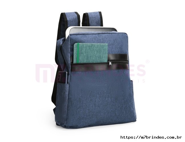 Mochila confeccionada em Poliéster PVC Mescla resistente à água, detalhes em couro sintético, fechamento em zíper e capacidade de até 18 litros. Possui compartimento interno com divisória em tela de nylon, ideal para notebooks de até 15,6 polegadas. Conta ainda com compartimento externo e dois bolsos laterais. Altura : 40,5 cm Largura : 30 cm Espessura : 12 cm