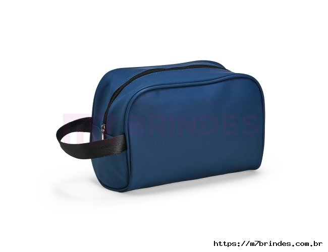Nécessaire em couro sintético impermeável com fechamento em zíper e alça lateral confeccionada em nylon. Altura : 16 cm Largura : 24,5 cm Profundidade : 9,5 cm