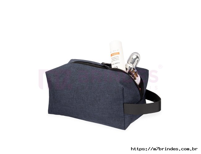 Nécessaire confeccionada em nylon resistente à água, fechamento em zíper, puxador e alça lateral para transporte em couro sintético. Altura : 11 cm Largura : 21,8 cm Profundidade : 11 cm