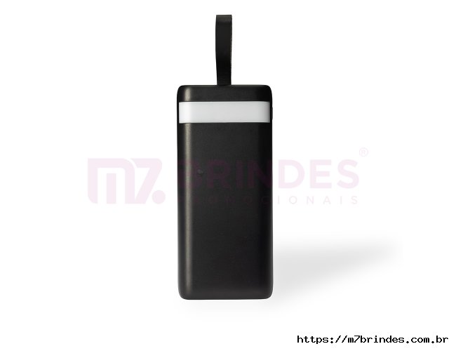 Power bank em plástico com a capacidade de até 20.000mAh sob medida para energizar smartphones, tablets e outros dispositivos compatíveis. Apresenta quatro cabos diferentes com saídas para: Lightning, USB-C, Micro-USB e USB. Conta ainda com duas entradas — uma USB-A e outra USB-C — painel de LED numérico, lanterna frontal integrada e alça fixa em couro sintético para transporte. Acompanha cabo USB-C. Altura : 15 cm Largura : 6,8 cm Espessura : 3 cm