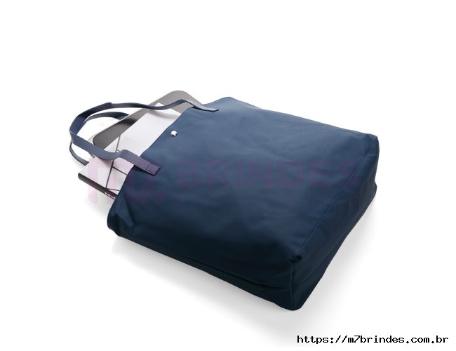 Sacola confeccionada em couro sintético à base de PVC com par de alças de costura externa e botões magnéticos metálicos para fechamento. Possui revestimento interno em poliéster e bolso compacto com fechamento em zíper. Altura : 34 cm Largura : 44 cm Profundidade : 14 cm
