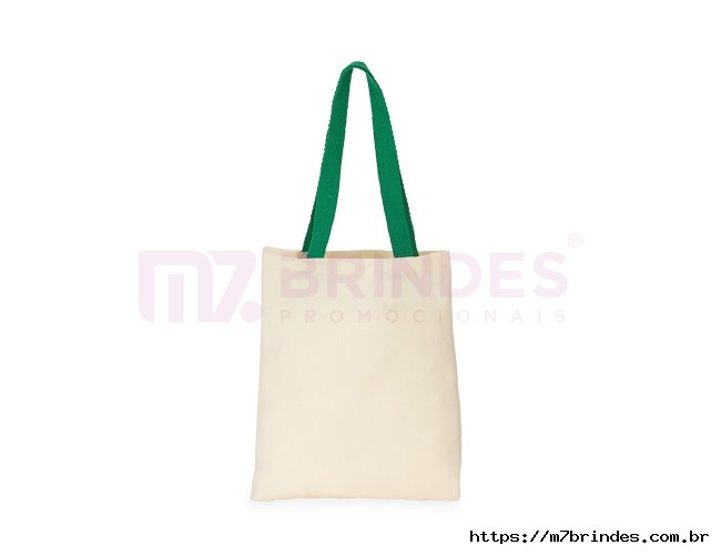 Sacola confeccionada em algodão 220 g/m² com alças de algodão trançado.